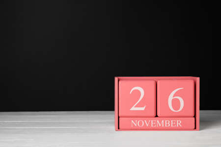 November 20 calendar date text on wooden blocks with copy space for ideas or text. Copy space and calendar concept.