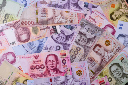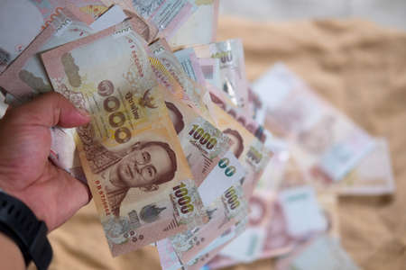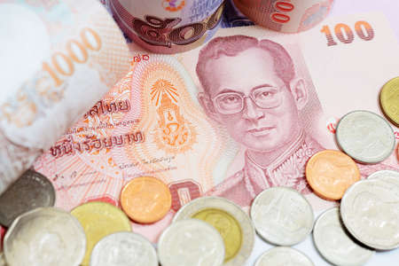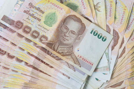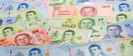 Thailand paper money, dinar banknotes as currency for exchange or travel. Thai money as a business background