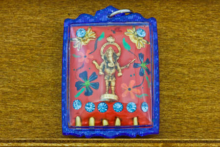 Yangon, Myanmar - FEB 19th 2014: Close up of protective talismani of a taxi stuck in a traffic jam on the street of Yangon, Myanmar