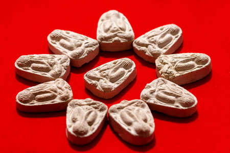 Ancient clay amulets on white