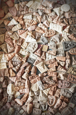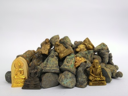 Isolates of the pile Amulets older, that golden buddha stand out.