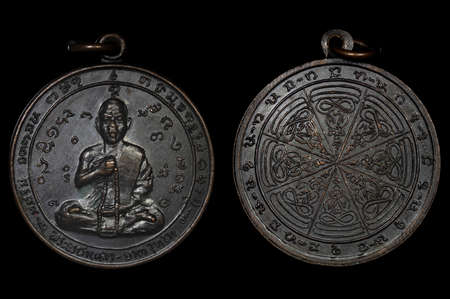 Amulet Coin, The most famous and the best amulet`s from Laos. Amulet Coin Phra Achan Chakamdaeng, B.E. 1970, The great master monk at Laos Issued at Champasak.