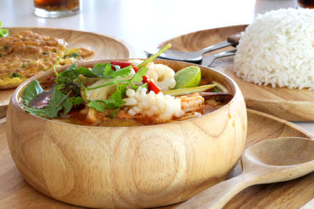 Tom Yum Goong,Thai spicy curry with chicken and rice