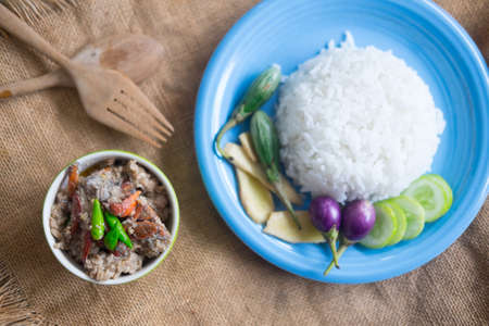Stew crab with coconut milk dip eaten with cooking rice, Thai food