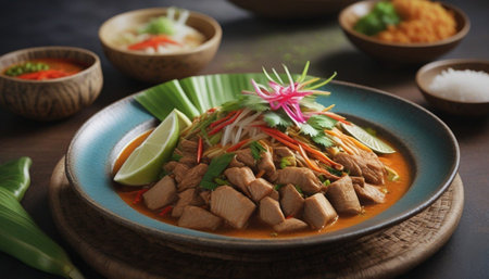 tradtional cambodian amok fish curry meal on restaurant table