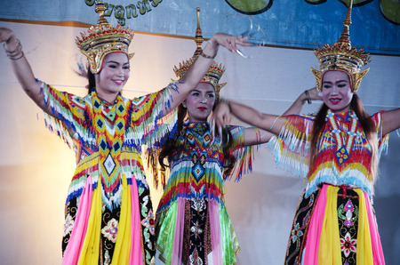 Manora dance is a traditional dance performance art of the South for show on stage at Wat Bangpai in night time on September 23, 2016 in Nonthaburi, Thailand