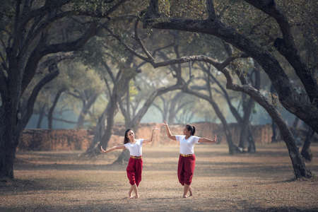 BANGKOK THAILAND June 11 2015: Unknown children Thailand students Culture Dance at Elementary School. bangkok at 2015.