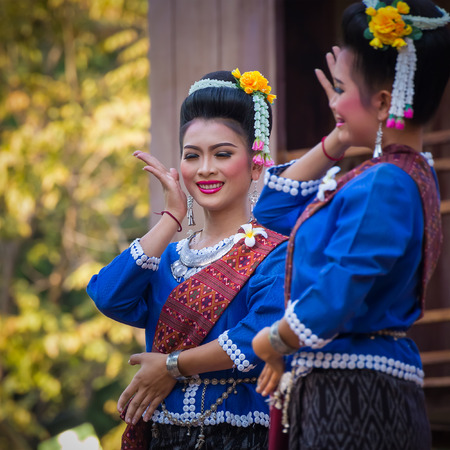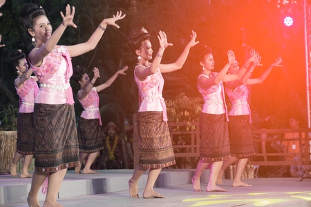 CHIANGMAI, THAILAND - JANUARY 3: Unidentified thai lanna style classical dance show during the miss chiangmai contest 2012 at Chiangmai province on January 3, 2012 in Chiangmai, Thailand.