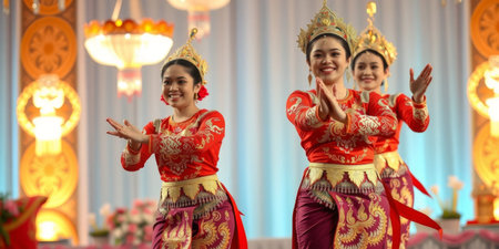 TIMISOARA, ROMANIA - JULY 7, 2019: Dancers from Indonesia in traditional costume present at the international folk festival, International Festival of hearts, organized by the City Hall.