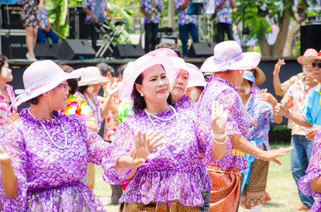 BANGKOK, THAILAND - APRIL 10: Songkran Festival in Bangkok, Thailand on April 10, 2015. Unidentified participants perform Thai traditional cloth dance in Songkran festival at Silom road