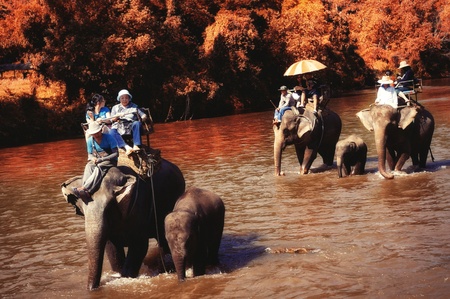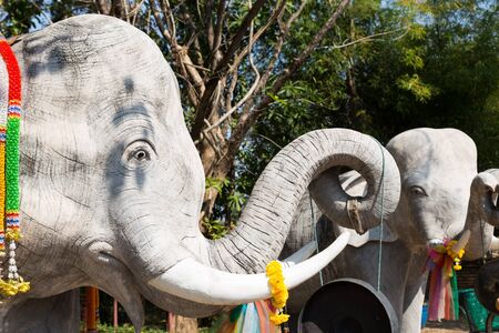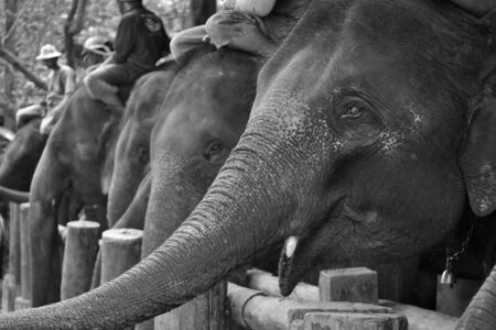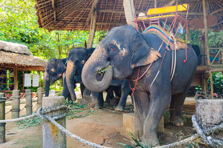 Large Thai elephants with tourist spots on their backs for riding. Summer