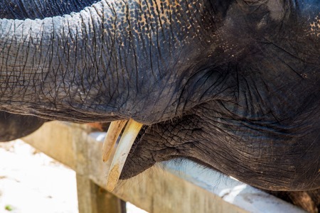 The big Thai elephant maximus indicus Cuvier is opening his mouth for food.