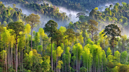 Scenery of abundance tropical rainforest and foggy in the morning at national park
