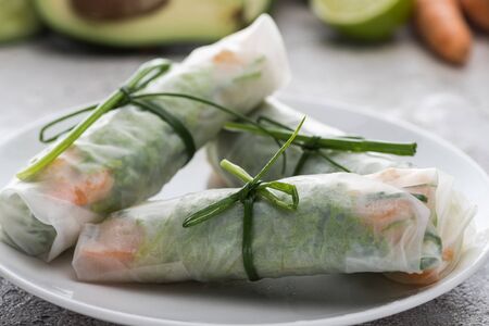 Fresh Spring Rolls. Vietnamese Food. Vegetarian Vietnamese summer rolls