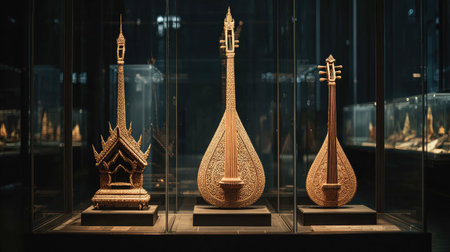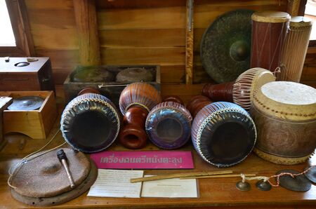 Full display of Thai classical music set in cultural exhibition room