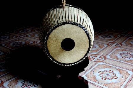 Still life of Thai Drum, musical instrument, selected focus, black and white image.