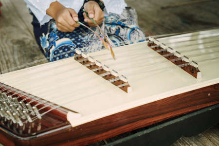 Thai girl playing Khim, the traditional Thai music Instrument. Leisure and hobby