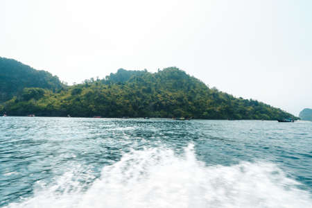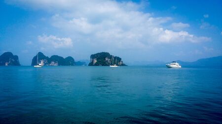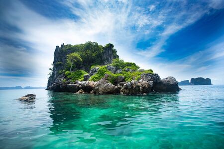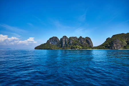 Exotic Andaman sea surface summer landscape with blue sky. Indian ocean, Thailand