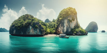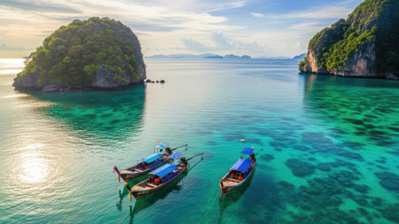 Tranquil Thai islands surrounded by crystal-clear waters and towering mountains. An idyllic travel destination for those in search of natural beauty and serenity.