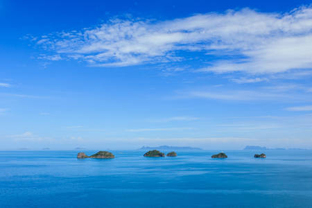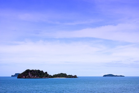 A beautiful view of nature with a calm, blue sea and islands in Thailand