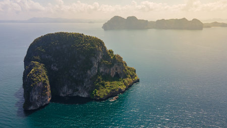 Aerial view of beautiful limestone rock formations in the sea, Thailand