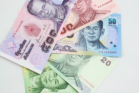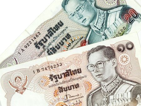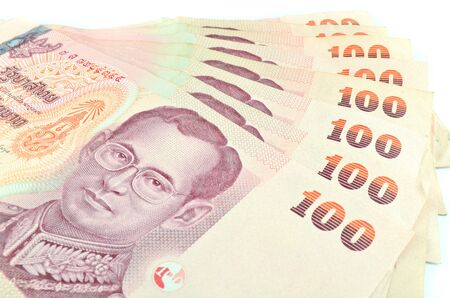 Thai money currency as background, Various of Thai currency banknotes isolated on white background use for background or saving money concept.
