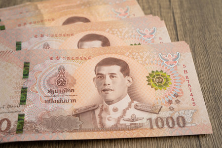 Thailand paper money, dinar banknotes as currency for exchange or travel. Thai money as a business background