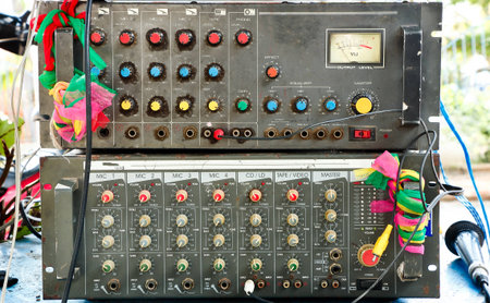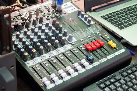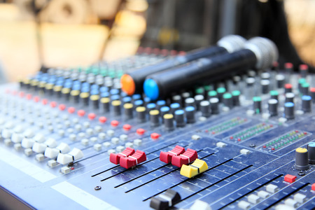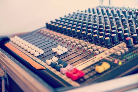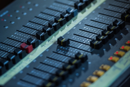 audio mixer in the studio for mixing audio from different musical instruments and voice.