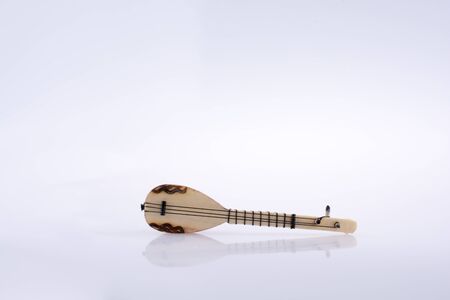 an anatolian musical instrument classical fiddle and bow, turkish kemenche. isolated closeup.