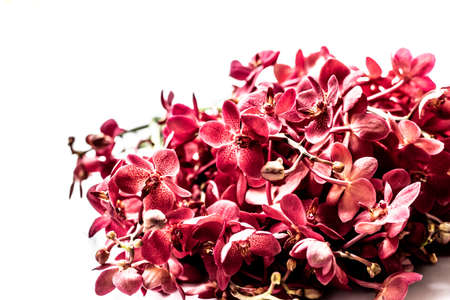 Red orchid flowers adding noise and grain, isolated on white background