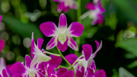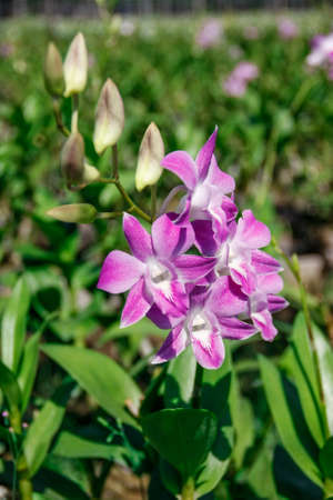 Orchid flower in orchid garden at winter for postcard beauty and agriculture idea concept design. Orchid flower growing in thailand farm.