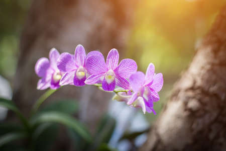 Beautiful blooming orchids in forest, On the bright sunshine