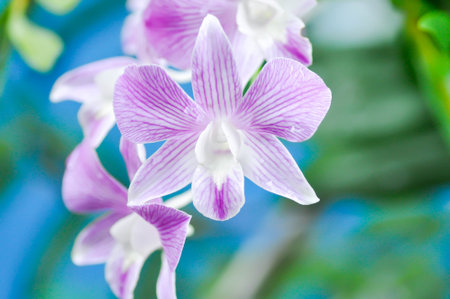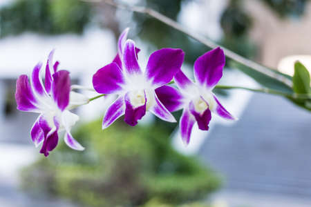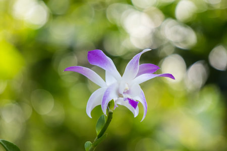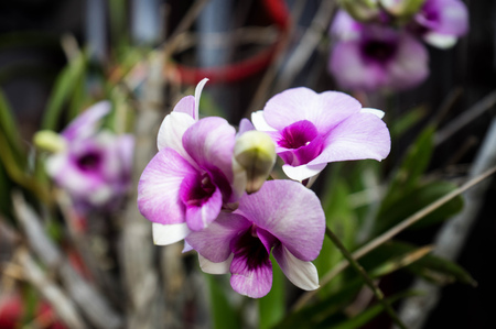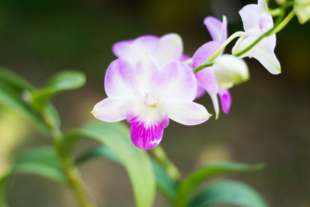 purple orchid or white and purple orchid flower, orchid or ORCHIDACEAE or dendrobium enobi or dendrobium orchid in the garden