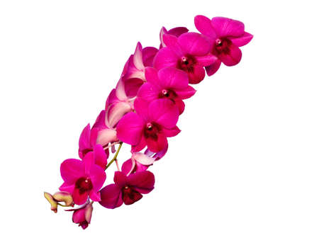 Branch of pink orchids on a white background