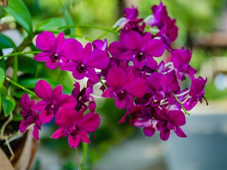 Bunch of colorful purple orchid in a garden