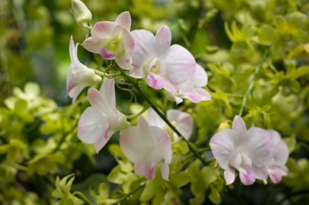 Blooming orchid flowers in Singapore Botanic Garden