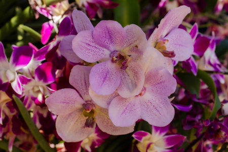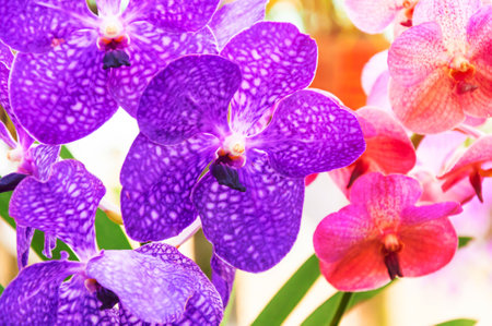 Orchid flower in orchid garden at winter or spring day for beauty and agriculture concept design. Vanda Orchidaceae.