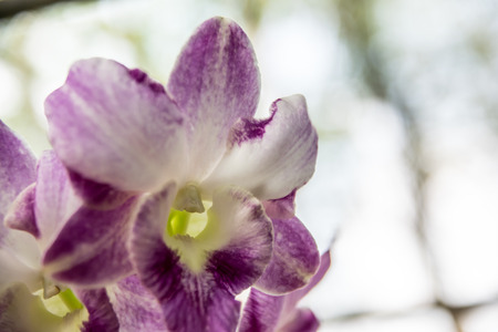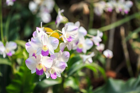 Orchid white and purple growing in Thailand. The Orchidaceae are a diverse and widespread family of flowering plants, with blooms that are often colourful and fragrant, known as the orchid family.