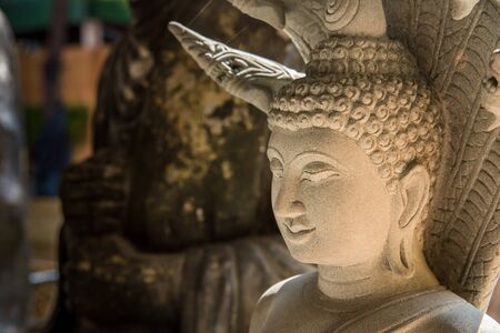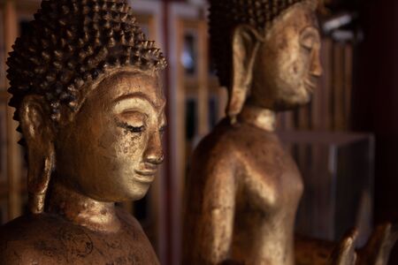Selective focus close-up shots of of the Buddha images with soft light and layout design for a beautiful religious background.