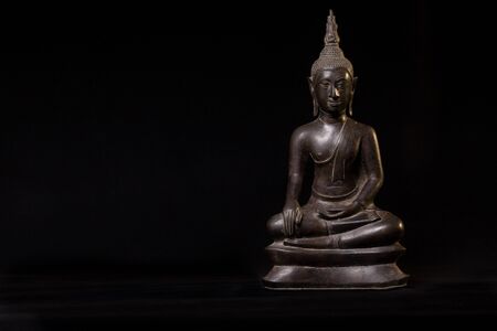Golden Buddha statue with sunlight used for amulets of Buddhism religion. Buddhism is popular region in China Japan and south east Asia.copy space concept.