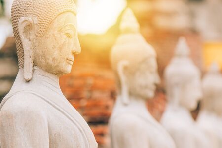 Worship of Thailand, Buddha statue, History of Thailand, Buddha statue Temple of Ayutthaya Province. Ayutthaya Historical Park, Thailand