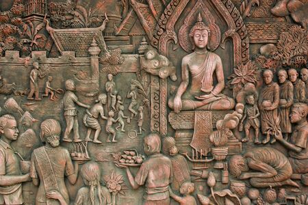 Buddha sculpture recounts Buddha s history on Thai temple wall