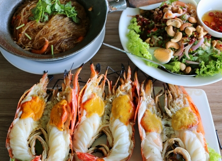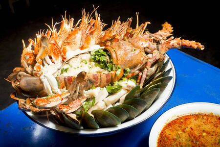 Seafood dishes such as grilled shrimp and crab and seafood sauce It consists of fresh chili, lime juice, ginger, garlic, sugar and fish sauce. A popular seafood set in Thailand.