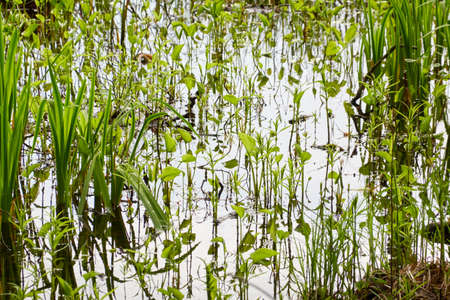 Vegetation in the vicinity of forest lake. Close up.