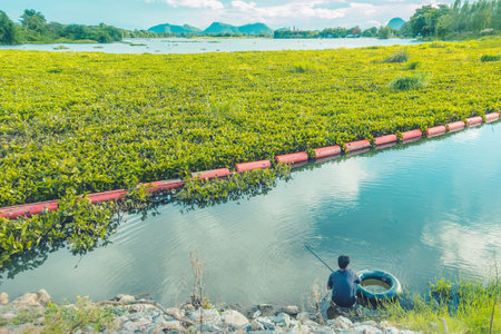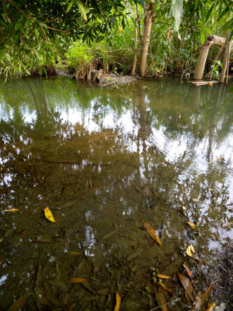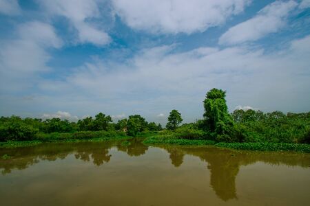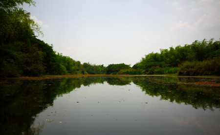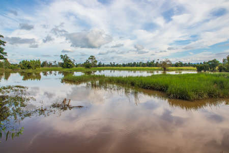 The beautiful natural landscape of the pond in the rural area of Saraburi Thailand
