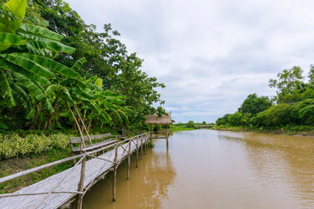 Bamboo bridge by the river in Lop Buri Province in Thailand