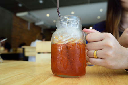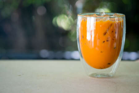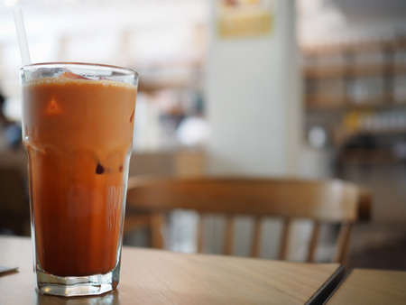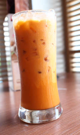 A glass of Thai tea in coffee shop.