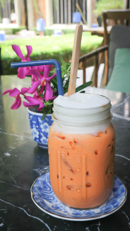 thai iced tea with milk in the cafe