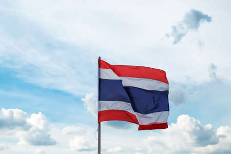 flag of Thailand with blue sky background.