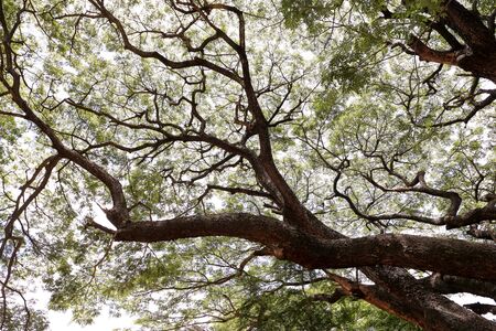 A large tree branch background,Beautiful green tree with branches and leaves.Under the shade of tall trees in tropical.